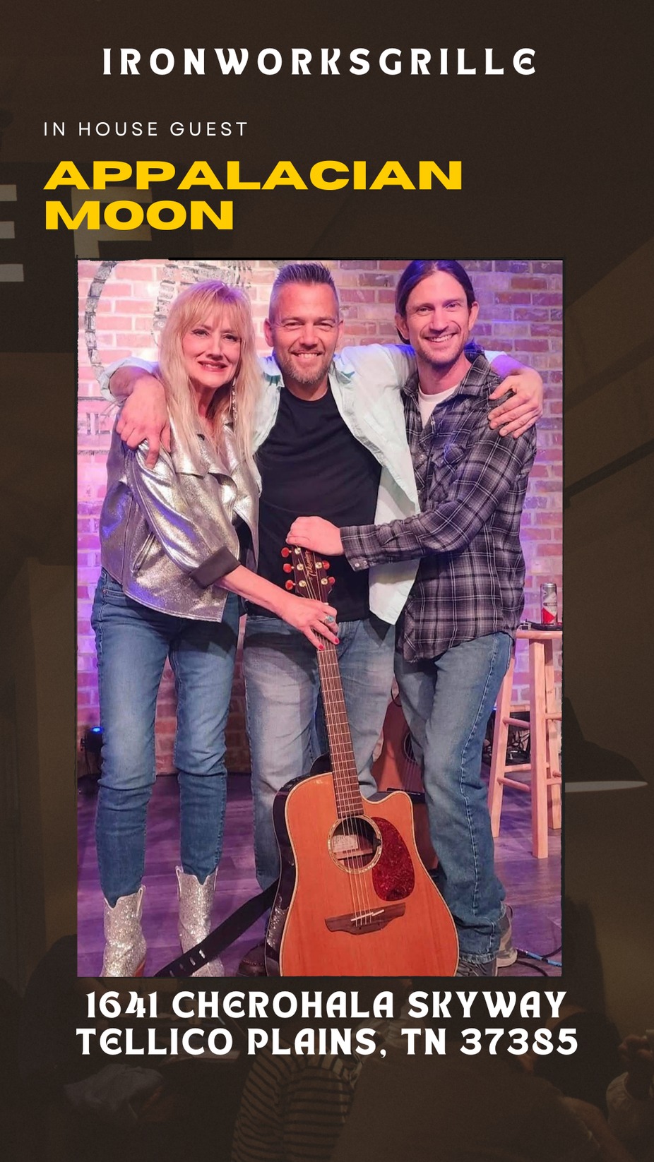 Join us on Friday, October 23rd from 6β9 PM at Ironworks Grille on the River for live music with Appalachian Moon. Enjoy a cozy riverside evening with smooth music, great food, and refreshing drinks. The perfect way to start your weekend with friends or family.
