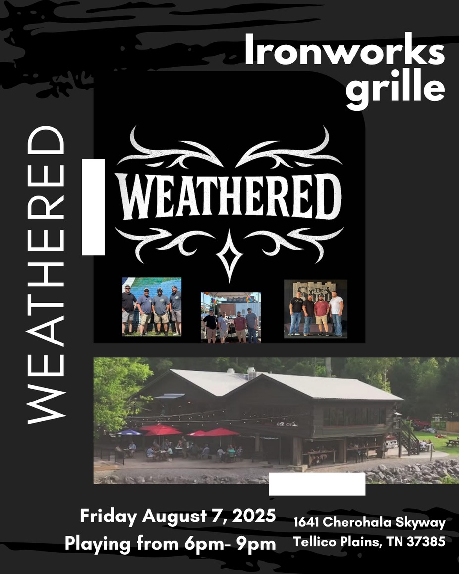 Make plans for Friday, August 7th from 6β9 PM and catch Weathered live at Ironworks Grille on the River. Relax by the river, enjoy your favorite drinks and dishes, and let the live music set the perfect tone for your weekend. A night full of fun, food, and music awaits.