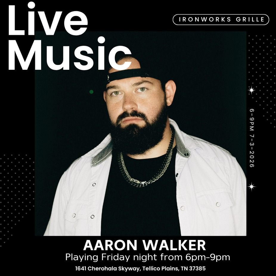 Join us on Friday, July 3rd from 6β9 PM at Ironworks Grille on the River for live music with Aaron Walker. Celebrate the start of the weekend with great tunes, delicious food, and the perfect riverfront atmosphere. Bring your friends and enjoy a relaxed yet vibrant evening.